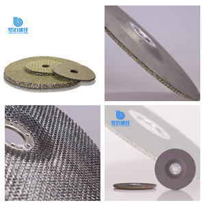 “羅邊玻璃纖維增強(qiáng)砂輪網(wǎng)片 是采用玻璃纖維增強(qiáng)網(wǎng)布涂以酚醛、環(huán)氧改性樹脂,經(jīng)烘培后沖切而成,裁切采用外徑、內(nèi)孔一次沖切成形工藝。因此,網(wǎng)片具有尺寸公差小,同心度好,周邊光潔等優(yōu)點(diǎn)。該產(chǎn)品主要為不織布復(fù)合網(wǎng)片、黒紙復(fù)合網(wǎng)片和純網(wǎng)片,具有極好的耐熱性、高速切割性能及高結(jié)構(gòu)強(qiáng)度。“